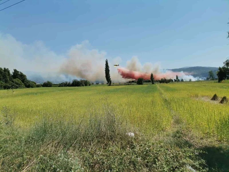 Muğla’nın Ula ilçesinde tarım arazisinde çıkan yangına karadan ve havadan müdahale ediliyor.