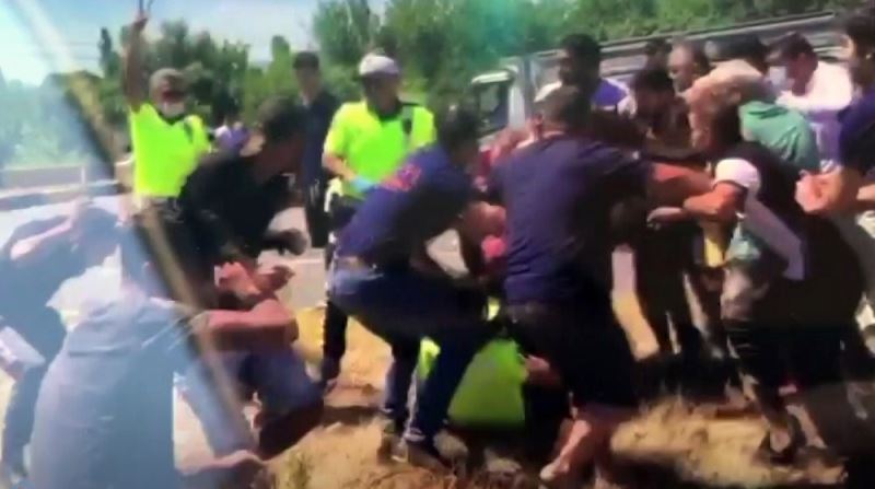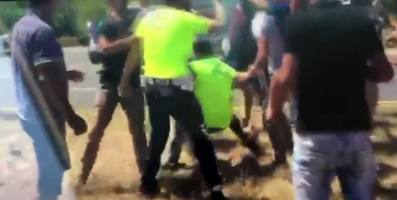 Muğla’nın Köyceğiz ilçesi Döğüşbelen Mahallesinde trafik uygulaması yapan Muğla Emniyet Müdürlüğü Bölge Trafik ekipleri, ehliyetsiz bir sürücüye işlem yapmak isteyince çok sayıda kişinin fiziki saldırısına uğradı.