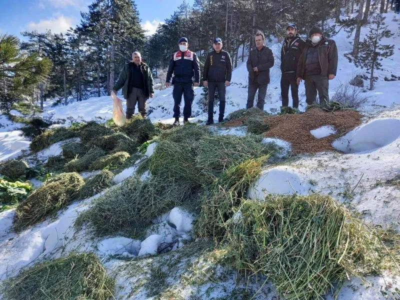Muğla’da kar ve soğuk hava dolayısıyla yiyecek bulmakta zorluk çeken yaban hayvanları unutulmadı.