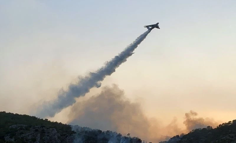 Öte yandan, Muğla’da devam eden orman yangınlarını havadan izleyen İnsansız Hava Aracı , uçakların yanan bölgelere su atmasını paylaştı.