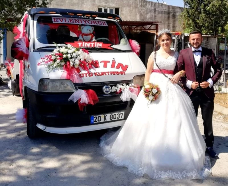 Mustafa Tintin ile Emine Akgül Tintin çifti gelin arabası olarak ekmek tekneleri olan çekiciyi tercih etti.