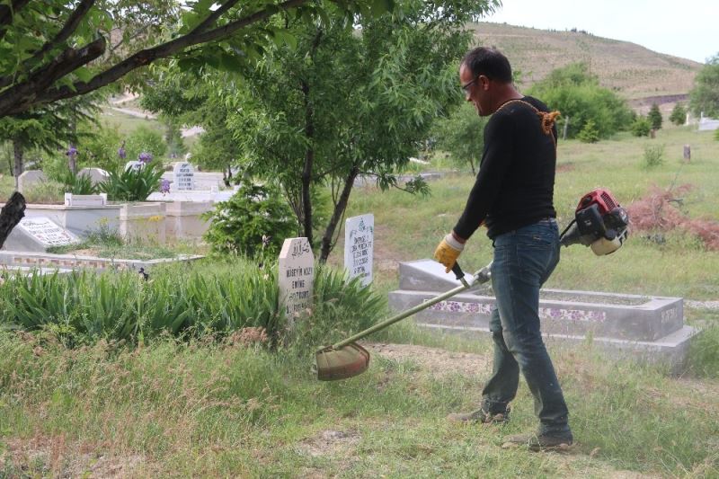 Elazığ’da Covid-19 salgını sürecinde 65 yaş üstünün taleplerini yerine getiren bir mahalle muhtarı, sokağa çıkma kısıtlaması nedeniyle mezarlıkların ziyaret edilemeyecek olması nedeniyle, otları kesti, kabirlerin üzerini temizleyerek vefa hizmeti gerçekleştirdi.