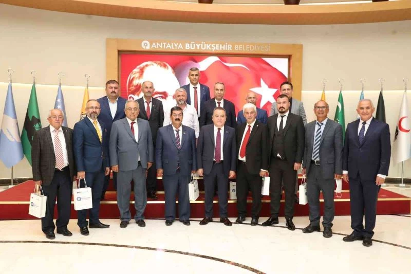 Antalya Büyükşehir Belediye Başkanı Muhittin Böcek Muhtarlar Günü vesilesiyle ilçe muhtar derneklerinin temsilcileri ile bir araya geldi. Ziyarette Antalya Büyükşehir Belediyesi tarafından düzenlenecek olan Muhtarlar Futbol Turnuvası’nın fikstür çekimi yapıldı. Muhtarları her zaman en yakın çalışma arkadaşları olarak gördüğünü söyleyen Antalya Büyükşehir Belediye Başkanı Muhittin Böcek, 19 Ekim Muhtarlar Günü’nü kutladı. Başkan Böcek, Batı Akdeniz Muhtarlar Federasyon Başkanı Nazif Alp, Türkiye Muhtarlar Derneği Antalya Şube Başkanı Mustafa Yılmaz ve İlçe Muhtar Dernek Başkanlarını Büyükşehir Belediyesi’nde ağırladı. Başkan Böcek, “Hizmet koşumuzdaki yol arkadaşlarımız olan tüm muhtarların gününü kutluyorum” dedi.