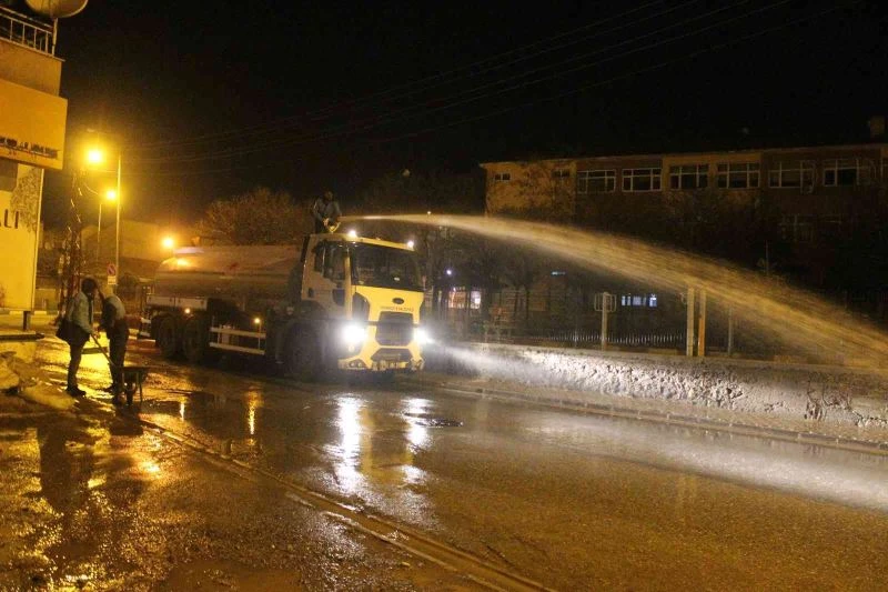 Van’ın Muradiye Belediyesi, bahar temizliği çerçevesinde cadde ve sokakları tazyikli suyla yıkıyor.