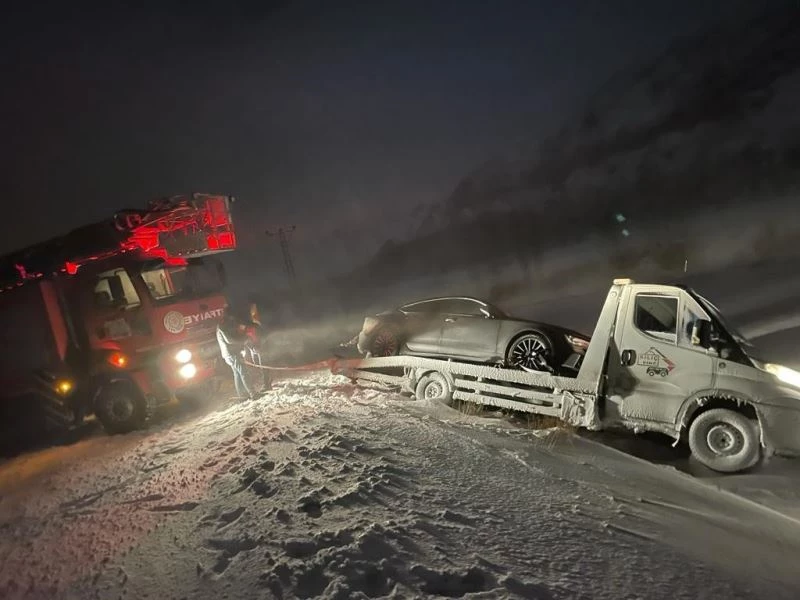 Muradiye’de kar ve tipi nedeniyle çekici şarampole düştü