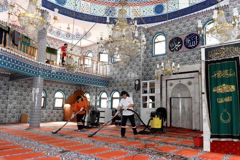 Ekipler, camileri tek tek ziyaret edip halılarını süpürüyor, minberden dolaplara her noktayı tek tek büyük özenle temizliyor.