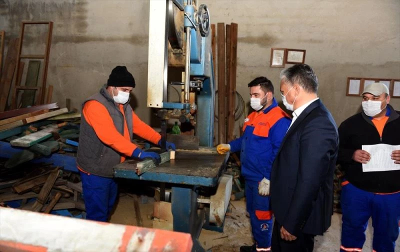 Ustalardan üretim hakkında bilgi alan Uysal, Kovid-19 nedeniyle parklarda birçok kişinin yan yana oturduğu bank ve oturma gruplarının dönüşümüyle ilgili çalışmaları yoğunlaştırdıklarını aktardı.