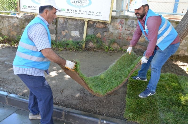Muş Belediyesince çimlendirme ve mevsimlik süs çiçeği dikimine başlandı.