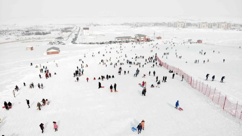 Muş’ta okulların yarıyıl tatiline girmesiyle Güzeldağ Kayak Merkezine çocuklarıyla birlikte akın eden binlerce kişi yoğunluk oluşturdu.