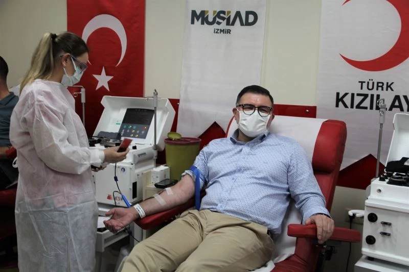 Pandemi ve sıcak havalar nedeniyle kan bağışları ciddi oranda azaldı. Müstakil Sanayici İşadamları Derneği (MÜSİAD) İzmir Şubesi de kan bağışına dikkat çekmek ve destek olmak amacıyla kan bağışı etkinliği gerçekleştirdi. Türk Kızılayı Ege Bölge Kan Merkezinde düzenlenen programda MÜSİAD İzmir Başkanı Bilal Saygılı ve MÜSİAD İzmir Şubesi üyeleri, sedyelere uzanarak kan bağışında bulundu.