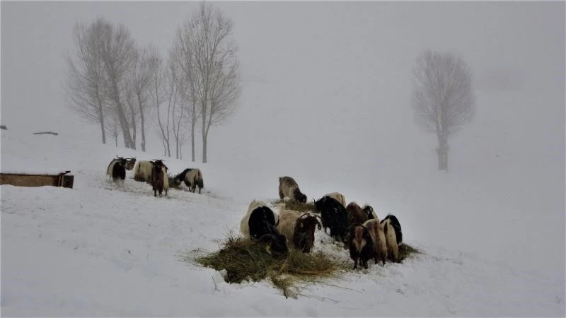 Köyde bu sene 2-3 gündür kar yağışının etkili olduğunu anlatan besicilerden Yusuf Omur, kış mevsiminde çok zorluk yaşadıklarını anlattı. Altı ay boyunca kış mevsimini ciddi şekilde yaşadıklarını aktaran Omur, “Hayvanlara ot, saman ve arpa veriyoruz. Kış burada çok uzun geçiyor. Kar, kış, tipi nedeniyle zorluğumuz çok. Geçimimizi sağlamak için başka çaremiz yoktur. Günde 2 defa hayvanlara ot veriyoruz. Bir sefer ot, bir sefer de saman veriyoruz. Hayvanlarımızı sabah 09.00’da bırakıyoruz, öğlen 11.00’de içeri alıyoruz. Saat 14.00’te tekrar dışarı bırakıp yem veriyoruz. Otu sırtımızda getirip hayvanlara veriyoruz. Kış çetin geçse de biz mecburuz. Bizim elimizde başka bir iş yok. Mecbur hayvanlarımıza bakacağız” dedi.