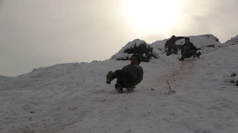 Köyde kar yağmadığını ifade eden çocuklardan Ali Kılıçaslan ise “Köyde kar yağmadığı için bizde buraya geliyoruz. Yağan kar çok az olduğu için bize yetmiyor. Her zaman buraya geliyoruz. 1-2 kilometre yürüyüp dağa geliyoruz ve burada kayıyoruz. Günümüz eğlenceli geçiyor. Sonra eve gidip ders çalışıp uyuyoruz” diye konuştu.