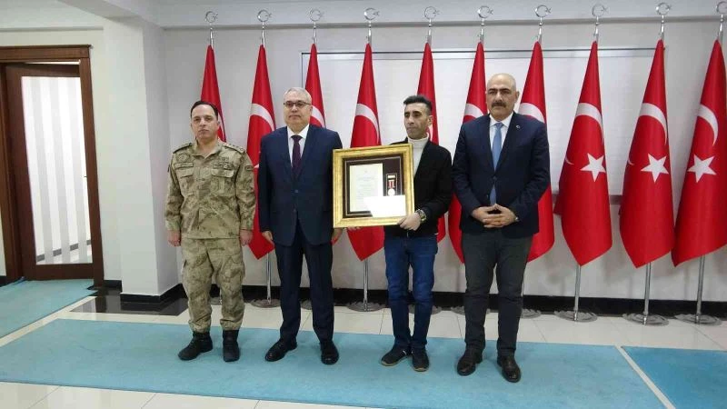 Muş Valisi İlker Gündüzöz, Cumhurbaşkanı Recep Tayyip Erdoğan imzasıyla gönderilen ‘Devlet Övünç Madalyası Beratı’nı şehidin güvenlik korucusu oğluna tevcih etti.