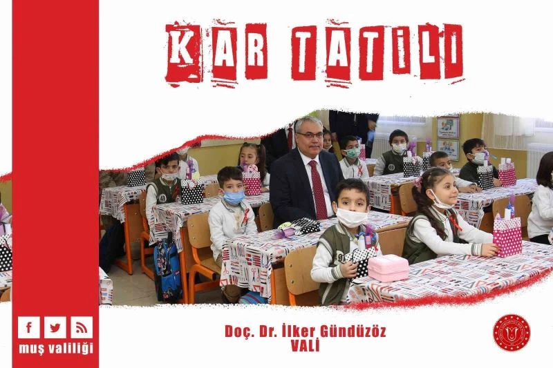 Muş Valiliği, olumsuz hava koşulları nedeniyle bugün için eğitim öğretime bir gün ara verildiğini duyurdu.