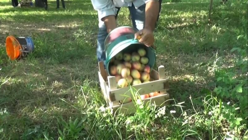 Muş’un Akpınar köyünde 9 dönüm alan üzerinde elma hasadına başlandı.