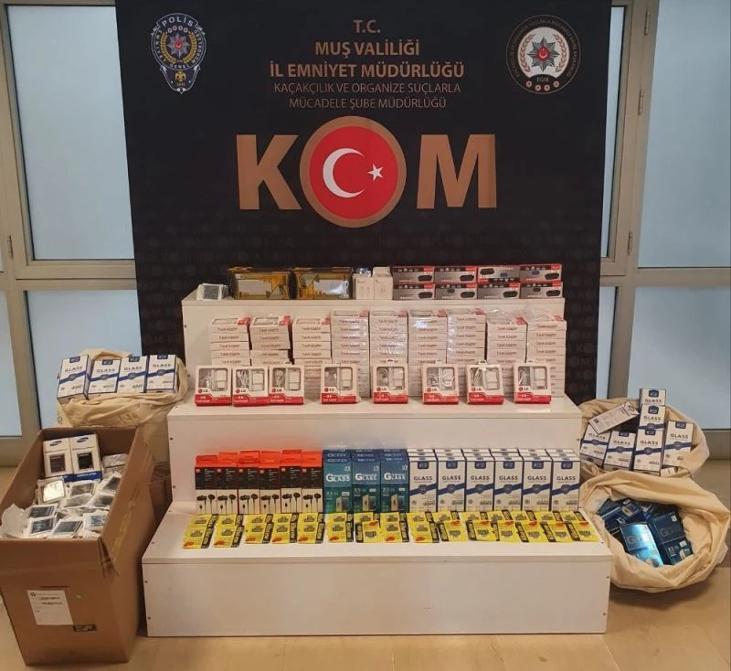 Muş Valiliğinden yapılan açıklamada, Emniyet Müdürlüğü KOM Şube Müdürlüğünce Emtia (Eşya) Kaçakçılığı ile ilgili olarak 08.09.2020 günü gerçekleştirilen operasyonda; 2897 adet cep telefonu ekran koruyucusu, 170 adet şarj cihazı ve kablosu, 910 adet cep telefonu bataryası, 151 adet flash bellek, 45 adet hafıza kartı, 40 adet kulaklık olmak üzere toplam 4213 adet yurt dışından kaçak yollarla ülkeye getirilen emtia ürünlerinin ele geçirildiği kaydedildi.