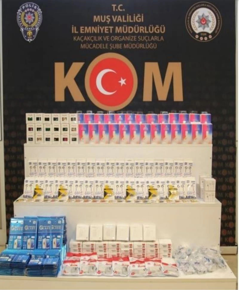 Muş’ta polis ekiplerince düzenlenen operasyonda 642 adet kaçak malzeme ele geçirildi.