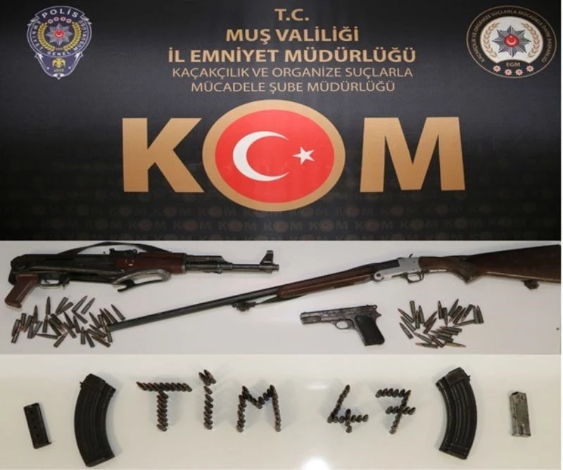 Muş Valiliğinden yapılan açıklamada, İl Emniyet Müdürlüğünce yürütülen silah ticareti suçu ile ilgili olarak 11 Aralık 2020 günü gerçekleştirilen operasyonda; 1 kalaşnikof, 1 tabanca, 3 kalaşnikof şarjörü, 2 tabanca şarjörü, 145 adet 7,62 milimetre fişek, 1 yivsiz av tüfeğinin ele geçirildiği kaydedildi. Yakalanan 1 şüpheli şahsın, işlemlerinin ardından çıkarıldığı adli makamlarca tutuklandığı bildirildi.