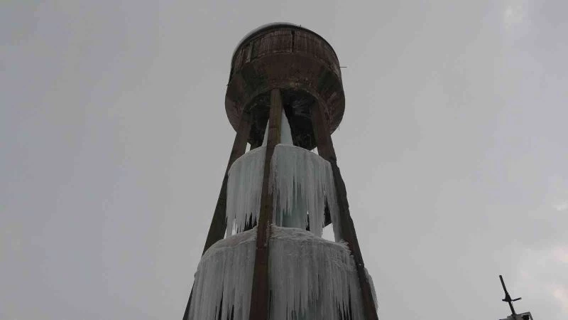 Mahalle sakinlerinden Osman Çağla, “Dondurucu soğuklardan dolayı Muş’umuzda kullanılmayan su kulesi buz tuttu. Buz kütlesi yaklaşık 30 metre var. Havalar çok soğuk. Eksi 20’leri bulan bir soğuk Muş’ta yaşanıyor şu an” dedi.