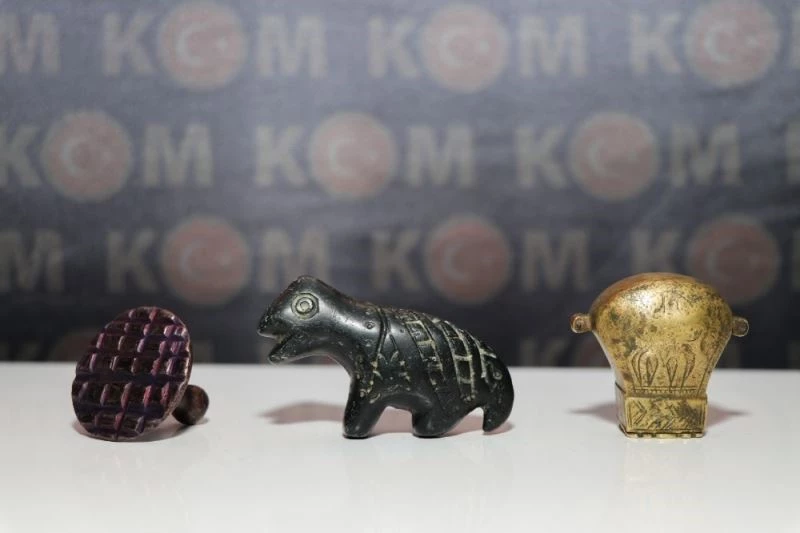 Muş’ta polis ekiplerince düzenlenen operasyonda, araç içerisine gizlenmiş vaziyette sikke, kolye, mühür ve heykelden oluşan 64 adet tarihi eser ele geçirildi.