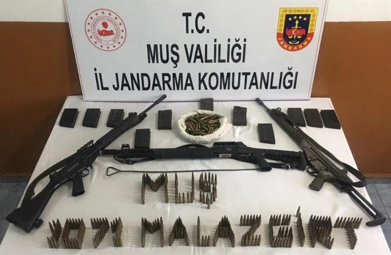Muş Valiliğinden yapılan açıklamada, İl Jandarma Komutanlığı tarafından PKK/KCK terör örgütü ve işbirlikçilerinin faaliyetlerinin deşifre edilmesine yönelik yapılan istihbarı çalışmalar neticesinde icra edilen operasyonda; 1 G-3 piyade tüfeği, 1 Belçika menşeli piyade tüfeği, 507 piyade tüfeği mühimmatı, 11 piyade tüfeği şarjörü, 1 ruhsatsız av tüfeği ile 1 silah temizleme aparatının ele geçirildiği kaydedildi.