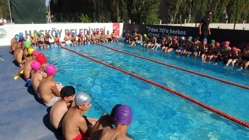 Muş’un Hasköy ilçesinde Gençlik ve Spor İl Müdürlüğü tarafından yürütülen “Yüzme Bilmeyen Kalmasın” projesi çerçevesinde çocuklara yüzme eğitimi veriliyor.