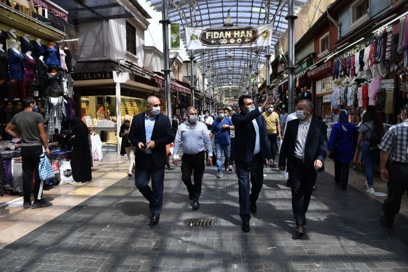 Osmangazi Belediye Başkanı Mustafa Dündar, Bursa’nın çarşı ve pazarlarında salgına karşı alınan tedbirlere uyulmadan alış veriş yapıldığı yönündeki yorumlara tepki gösterdi. Tarihi Çarşı ve Hanlar Bölgesi’ni ziyaret eden Başkan Dündar, sokağa çıkma ve bayram üzeri yoğunluğuna rağmen hem işletmelerin hem de vatandaşların başta maske, ateş ölçe ve mağaza içi sosyal mesafeye uyduklarını açıkladı.