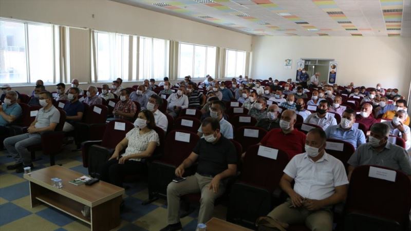 Mut Ziraat Odasi Konferans Salonun'da sosyal mesafe kuralina uyularak ve maske takilarak gerçeklesen toplantida Kaymakam Köken, muhtarlarla mahallelerin güvenlik, egitim, saglik ve sosyal hizmet konularini görüstü.