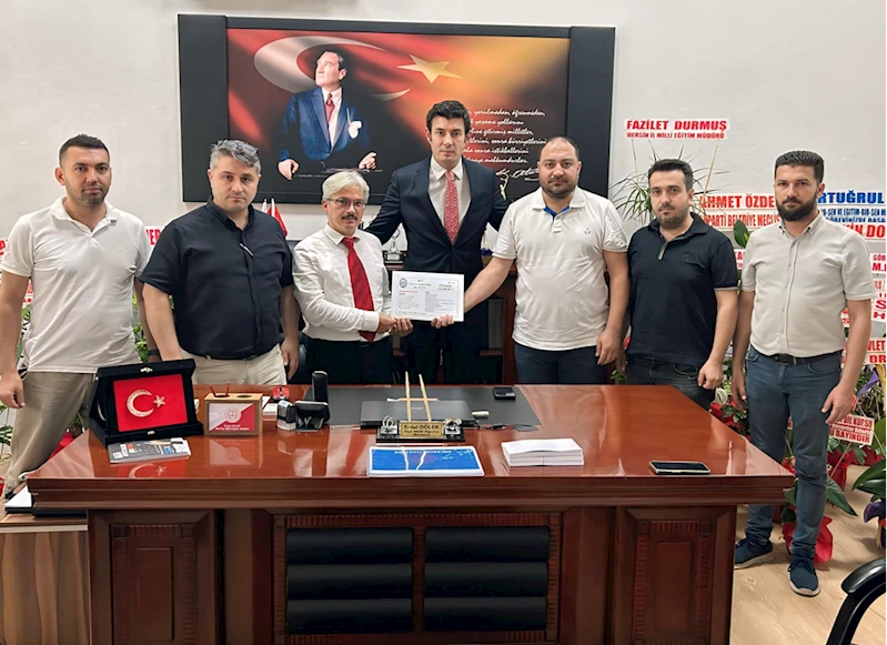 Törene katılan Mut Ticaret ve Sanayi Odası Yönetim Kurulu Başkanı Şahin Sezer, Türkiye Odalar ve Borsalar Birliğince gönderilen 150 bin liralık çeki, İlçe Milli Eğitim Müdürü Erdal Dölek'e teslim etti.