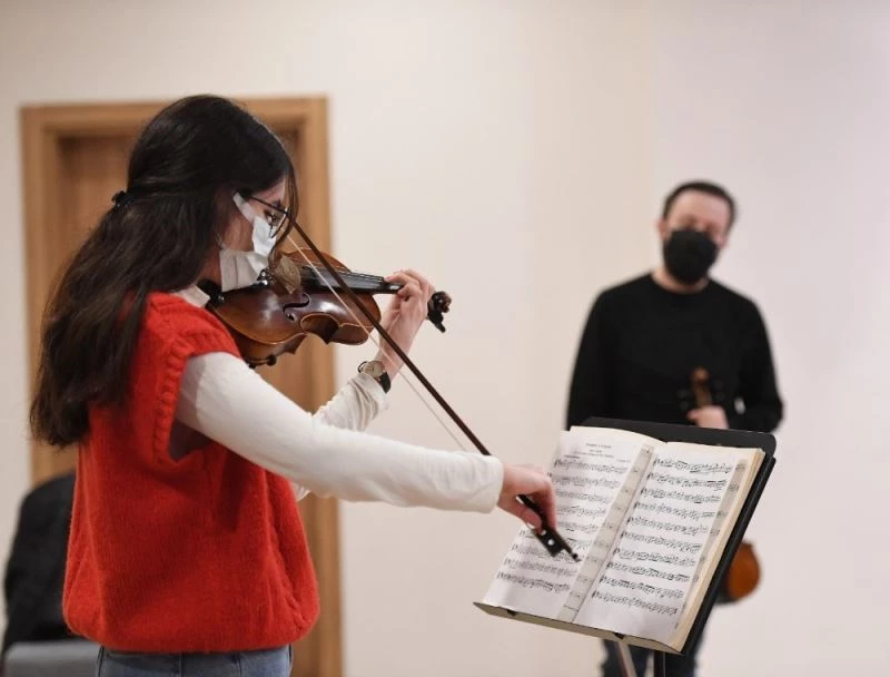 Konyaaltı Belediyesi Müzik Akademisi’nde keman eğitimi alan öğrenciler, keman sanatçısı Can Özhan’dan iki gün boyunca masterclass eğitimi aldı.