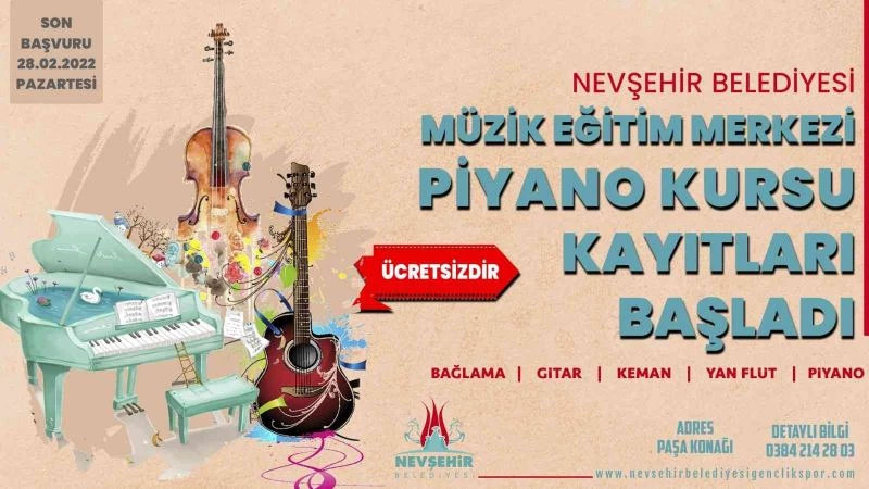 Nevşehir Belediyesi Müzik Eğitim Merkezi’nde açılacak olan ücretsiz müzik kursları için son başvuru tarihi 28 Şubat 2022 olarak duyuruldu.