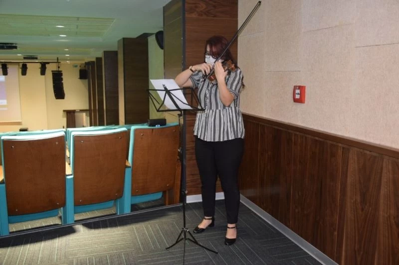 Düzce Üniversitesi Tıp Fakültesi Konferans Salonu’nda düzenlenen konferansta katılımcılar, Düzce Üniversitesi Sanat Tasarım ve Mimarlık Fakültesi Müzik Bölümü’nden Arş. Gör. Nurcan Bahadır’ın keman dinletisiyle karşılandı. Konferansa, Düzce Üniversitesi Tıp Fakültesi Dekan Yardımcısı Prof. Dr. Muhammet Ali Kayıkçı, öğretim üyeleri, idari personeller ve öğrenciler katılım gösterdi.