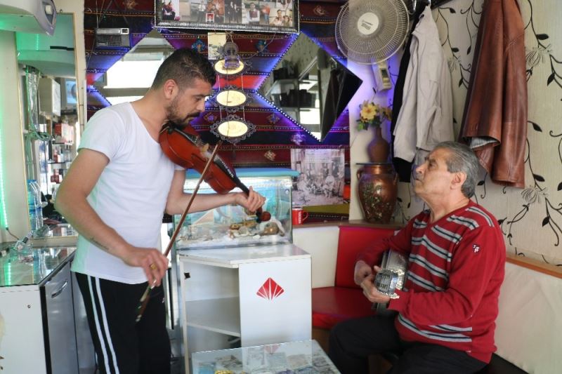 Kendi hocasının babası olduğunu belirten Kaynak, kendini bildi bileli müzik yaptığını ifade etti. Müşterilerinden istek parça da alan Şems Kaynak, çevredeki vatandaşlar tarafında oldukça dikkat çekiyor.
