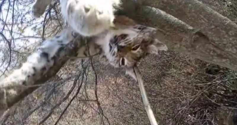 Sivas’ın merkeze bağlı Hıdırnalı köyünde vatandaşlar, ağaç dalında asılı durumda ölmüş vaşak buldu.