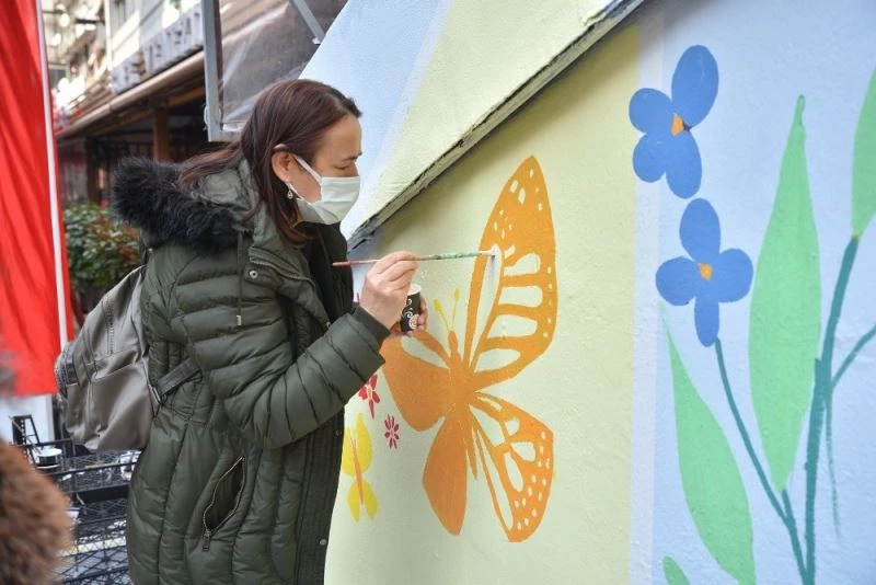Bursa’da görüntü kirliliğinin önüne geçmek için trafo binaları, istinat duvarları ve köprülü kavşakları tuval gibi kullanıp, cadde ve sokakları sanatla buluşturan Büyükşehir Belediyesi Kent Estetiği Şube Müdürlüğü, 8 Mart Dünya Kadınlar Günü nedeniyle anlamlı bir etkinliğe imza attı. Yaya hareketliliğinin yoğun olduğu Nalbantoğlu Caddesi’ndeki duvarı sanat eserine dönüştürmek için başlatılan projeye tüm kadınlar dahil edildi. Kent Estetiği Şube Müdürlüğü ressamları tarafından duvara çizilen resim, ellerine fırça alan kadınlar tarafından büyük bir özenle boyandı. Bursalı kadınların yoğun ilgi gösterdiği etkinlikte, sıradan bir duvar elbirliğiyle adeta sanat eserine dönüştü.