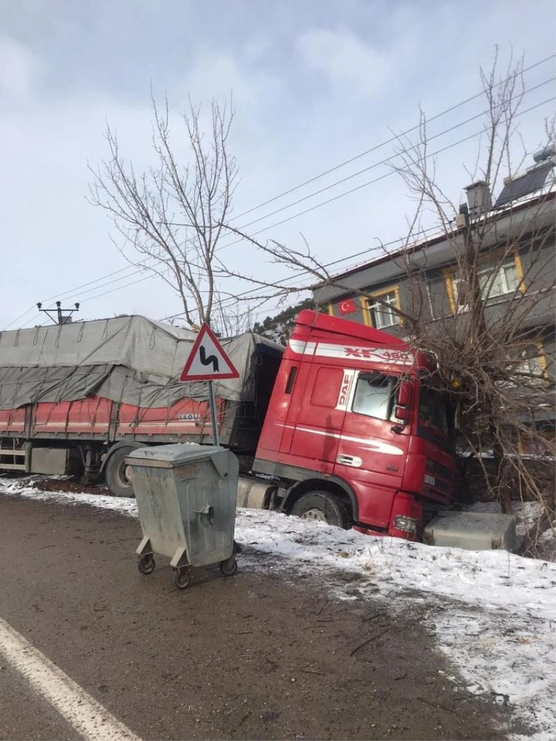 Ankara’nın Nallıhan ilçesinde freni boşalan bir tır şarampole uçtu.