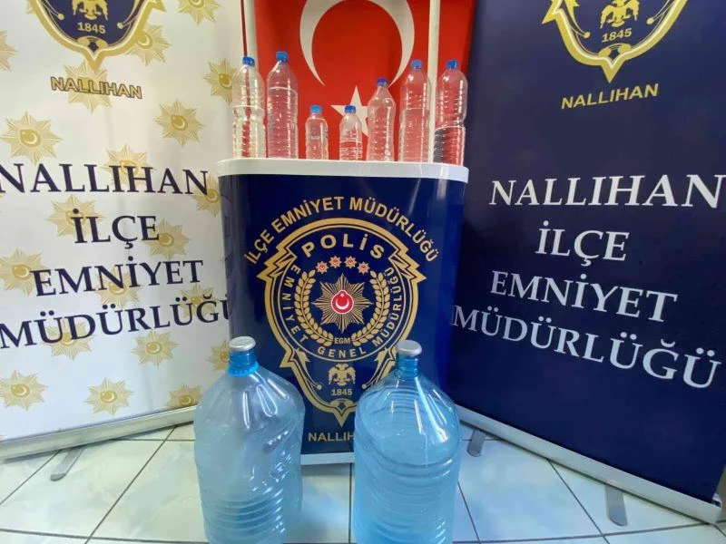 Ankara’nın Nallıhan ilçesinde polis ekiplerinin düzenlediği kaçak ve sahte alkollü içki operasyonunda litrelerce sahte ve kaçak alkol ile içki ve alkollü içecek yapımında kullanılan malzemeler ele geçirildi.