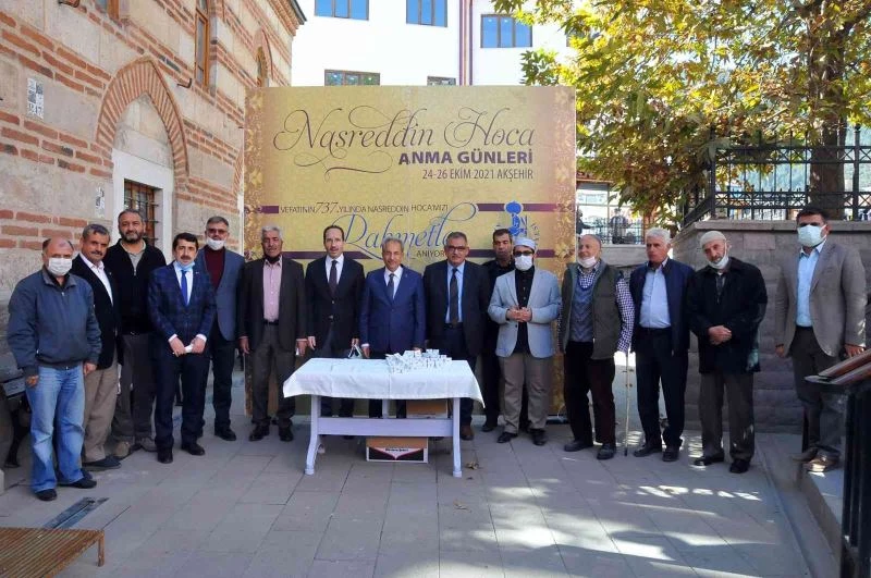 Konya’nın Akşehir İlçe Belediyesi tarafından düzenlenen Nasreddin Hoca Anma Günleri kapsamında öğle namazı öncesi Nasreddin Hoca’nın ruhu için Kuran-ı Kerim tilaveti yapılarak Mevlid-i Şerif okundu.