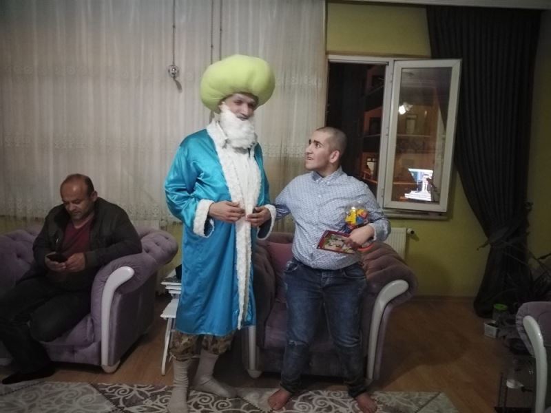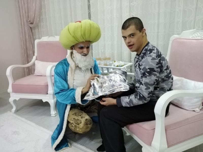 Malatya’da engelliler Nasrettin Hoca kıyafetiyle, korona virüs önlemleri mesafe kuralları riayet edilip ziyaret gerçekleştirilerek sevindirildi ve hediyeler verildi