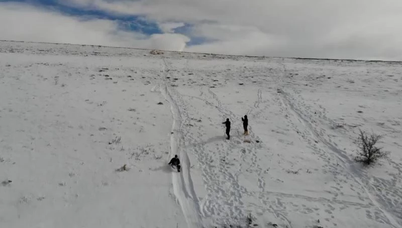 Sivas’ta geçtiğimiz haftalarda aylardır beklenen kar yağışı etkisini göstermişti. Büyüğünden küçüğüne herkesin sevindiği kar yağışıyla birlikte birçok renkli görüntü ortaya çıktı. Sivas’ın Kangal ilçesine bağlı Etyemez köyünde de bir grup vatandaş karı eğlenceye çevirdi. Vatandaşlar köyde bulunan yüksek bir bölgede kayak yaptılar. Plastik poşet ve torba ile kayan vatandaşlar doyasıya eğlendiler. Vatandaşlar eğlenceli anları ölümsüzleştirmeyi de unutmadı. O anları drone kamerası ile kaydettiler. Kayak yapan vatandaşlardan Mehmet Atmaz, “Normalde yaz tatilinde geliyorduk. Bu sene de kar yağdı gelip karın tadını çıkaralım dedik. Kızak kaydık, yerimizde çok güzel. Biraz dik yoruyor ama çok zevkli. 10 numara herkese tavsiye ederim. Burası Sivas Kangal etyemez köyü. Herkesi bekleriz. Hep yazın değil kışında gelin. Memleketi yalnız bırakmayın’’ dedi.