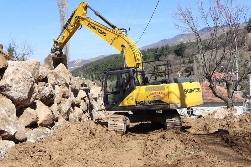Yaklaşık 180 metrekare alanda yürütülen çalışmalar kapsamında yaya ve araç trafiğini güvenli hale getirerek can ve mal kaybını önlemek amacıyla 3 metre yüksekliğinde taş duvar örüldü.