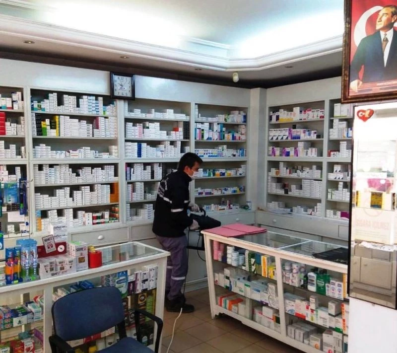 Korona virüsle aktif mücadeleye devam eden Nazilli Belediyesi, ilçe genelinde bulunan toplam 87 eczanenin tamamını ULV cihazıyla dezenfekte etti.