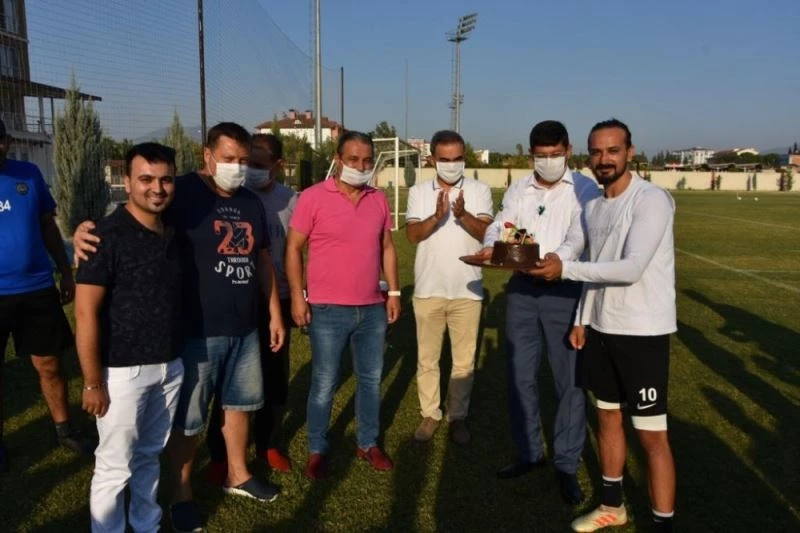 Yeni sezon hazırlıklarına Yıldırım Demirören Spor Tesisleri’nde devam eden Nazilli Belediyespor’da takım kaptanı Zafer Özden’in doğum günü kutlandı.