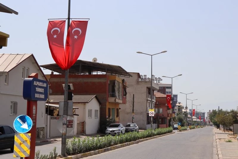 Nazilli Belediyesi ekipleri, Malazgirt Zaferi’nin 950’nci ve Büyük Taarruz’un 99’uncu yıl dönümleri nedeniyle ilçeyi Türk bayrakları ile donattı.