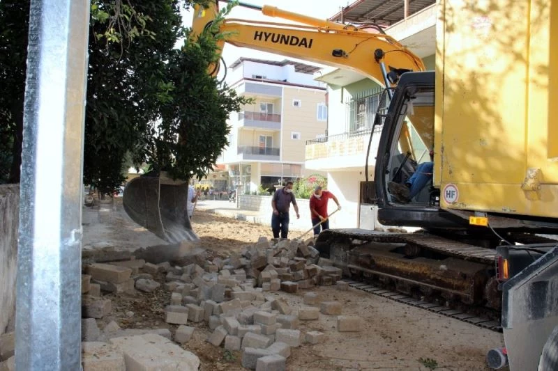 Nazilli Belediyesi Fen İşleri Müdürlüğü ekipleri Yeşil Mahalle 636 Sokak’ta parke taşı döşeme ve kaldırım yenileme çalışmalarına başladı.