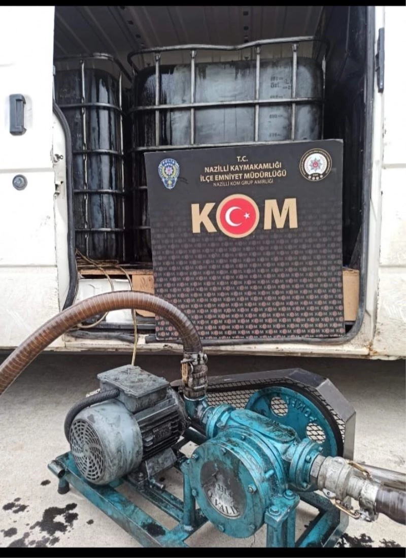 Nazillide Polis ekipleri, akaryakıt kaçakçılığı yapan 2 şahsın yakalanması ve suç unsurlarının ele geçirilmesi için operasyon başlattı. Yapılan çalışmalarda Manisa’dan gelen Ü.A. ve G.K. 2 ton karışımlı akaryakıtı ilçede piyasa sürmek üzereyken yakalandı. Atık yağları çeşitli karışımlarla akaryakıt oluşturan şahıslar bu ürünleri satarak haksız kazanç elde etmenin peşindeydi. Araçlara zarar veren bu karışımlı akaryakıt Nazilli KOM Grup Amirliği ekiplerince ele geçirildi. 2 şüpheli hakkında adli işlem başlatıldı. Bir başka operasyonda ise KOM Grup Amirliği ekipleri A.H. nin ikametinde ve aracında yaptığı aramalarda 110 bin adet Bandrolsüz/Kaçak Makaron, 140 kg açık Tütün ve 18 bin adet doldurularak sigara halinde makaronlar ele geçirildi. Gözaltına alınan şahıs sevk edildiği mahkemece tutuklanarak cezaevine gönderildi.