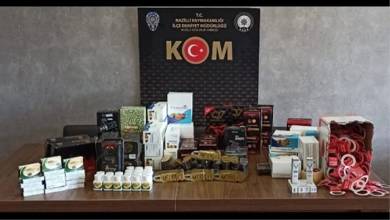 Aydın’ın Nazilli ilçesinde yapılan operasyonda çok sayıda kaçak sigara, hap ve ekipman ele geçirildi.