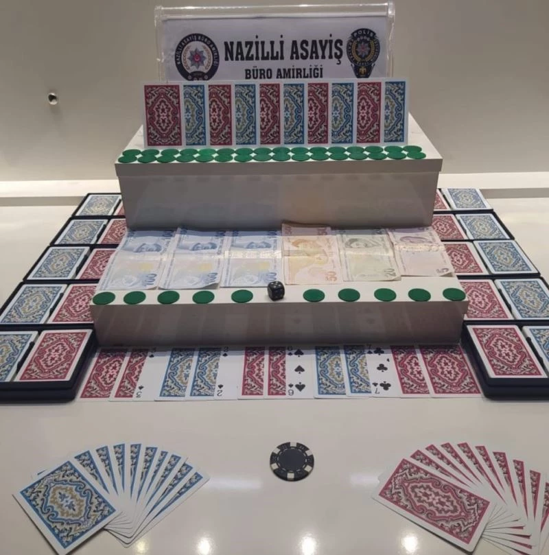 Edinilen bilgiye göre, Nazilli İlçe Emniyet Müdürlüğü ekipleri uzun süredir takip ettiği bir kıraathaneye gece saatlerinde baskın düzenledi. Nazilli Polisi Kumarla mücadelesini kararlılıkla sürdürüyor. Yapılan baskında işyeri içerisinde 4 şahsı kumar oynarken yakalayan ekipler masa üzerindeki 380 TL para ile birlikte pullar ve iskambil kağıtlarına el koydu. İş yeri sahibi K.O. hakkında Kumar Oynamak İçin Yer ve İmkan Sağlama suçundan adli tahkikat başlatıldı. Oyun oynayan 4 şahsa Kabahatler kanunu uyarınca 4 bin 900 TL ve Kovid-19 tedbirleri ihlal edildiğinden ve Hıfzıssıhha Kanunu gereği 3 bin 600 TL olmak üzere toplamda 8 bin 500 TL idari işlem uygulandı.