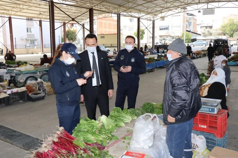 Nazilli Belediyesi Zabıta Müdürlüğü ekipleri, pazar alanlarında HES kodu, maske ve mesafe kontrolü ile yönetmelik kapsamında denetime uymayarak tezgahlar arası mesafe aşımı yapan esnaflara uyarılarda bulundu.