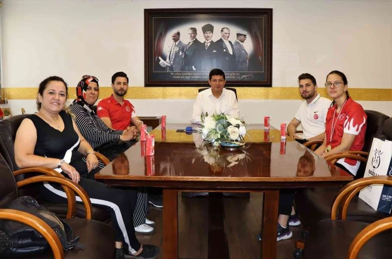 Türkiye Taekwondo Şampiyonu 14 yaşındaki Elifnaz Köseoğlu, Belediye Başkanı Kürşat Engin Özcan’ı makamında ziyaret etti.